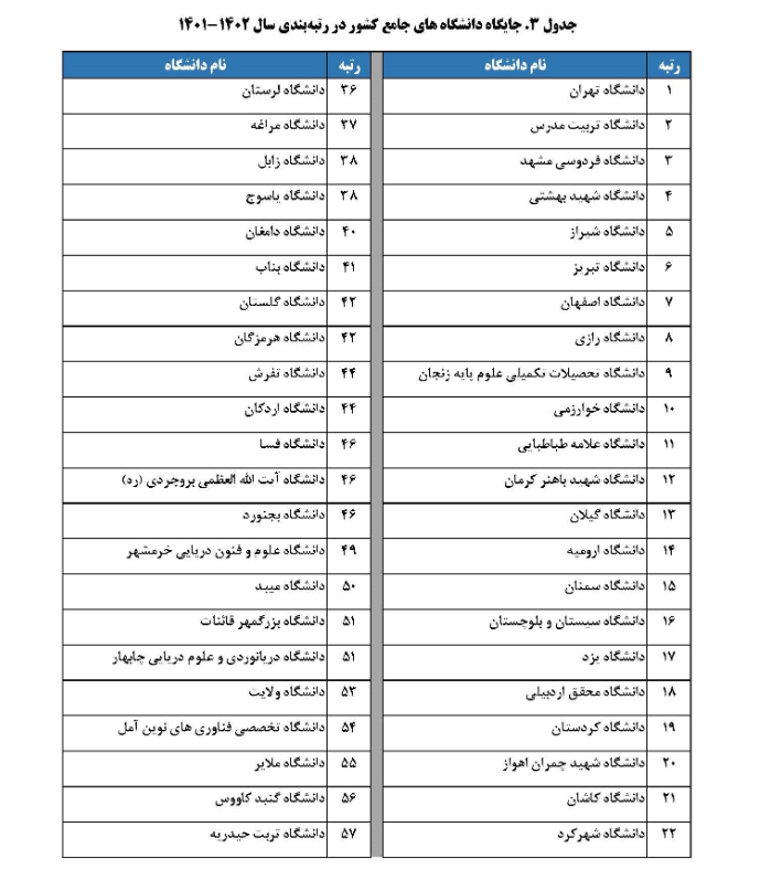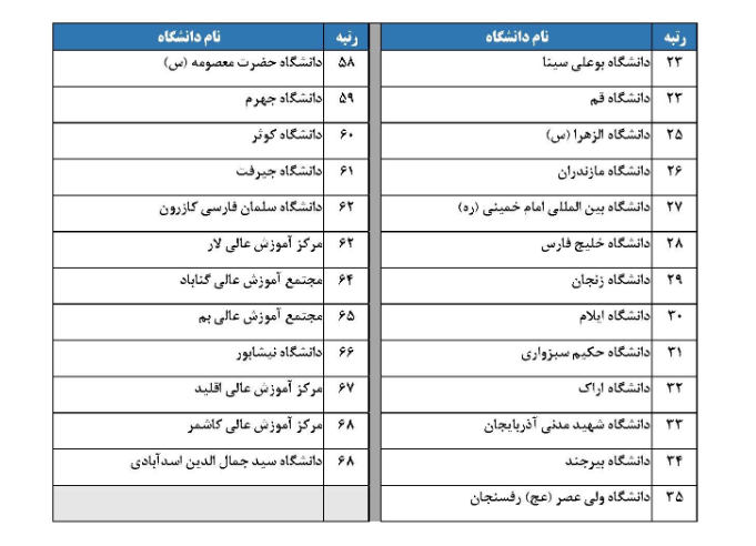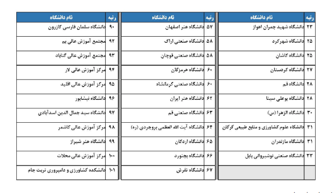 ISC رتبهبندی ۱۱۵ دانشگاه دولتی و ۲۱ غیردولتی را منتشر کرد