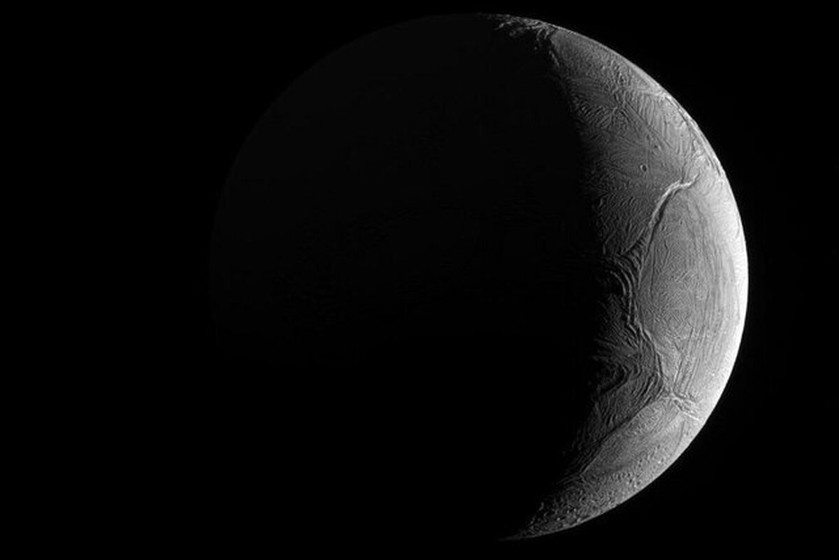 عکس روز ناسا هلالی را از قمر «انسلادوس» سیاره زحل به نمایش می‌گذارد.